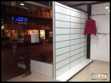 Mağazayı müşteriyle buluşturan ilk alan olan vitrin, pazarlama için önemli bir alandır. Uygulamalarımızda sağlamlığa, görsele ve kullanışlı olmasına özen gösteriyoruz. Farklı vitrin,raf vitrin ,askı seçenekleri bulunmaktadır. Bunlar müşteri isteğine bağlı farklı renk ve modellerde oynamalar yapılarak müşterinin zevkine göre de uyarlanır. Şeffaf ve açık renkler önerilerimizdir. Müşteriyi rahatlatan tasarımlar uzman bir ekip tarafından uygulanır.